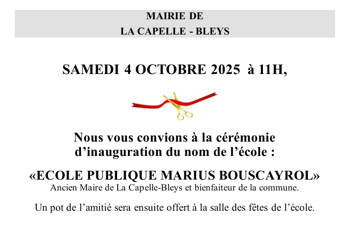Nous vous attendons nombreux pour l’inauguration du nom de l’école le samedi 4 octobre 2025 à 11h00.