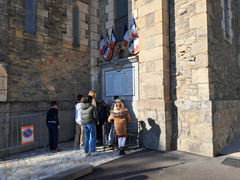 Ce matin se tenait la cérémonie de commémoration du 11 novembre. La gerbe a été déposée avec les enfants au monument aux morts.