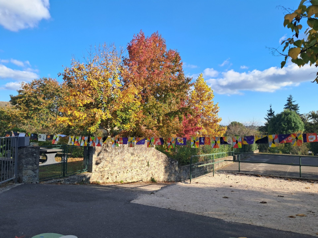 Les enfants de l’école ont participé le 16 octobre à la « grande lessive » et ont affiché leurs œuvres depuis la cour de l’école jusqu’à l’extérieur.