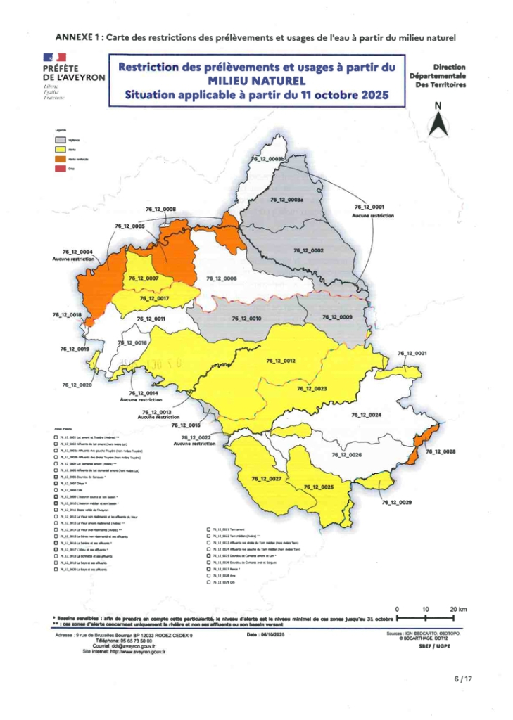 Plus d’information sur le site suivant : https://www.aveyron.gouv.fr/Actions-de-l-Etat/Environnement/Gestion-de-l-eau/Secheresse/Arretes-de-restrictions .