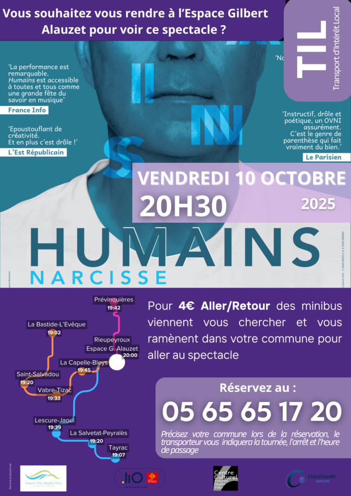 Le 10 Octobre 2025 (arrivé à l’Espace Alauzet à 20h00) pour voir le spectacle « Humains » proposé par l’Association du Centre Culturel ASV