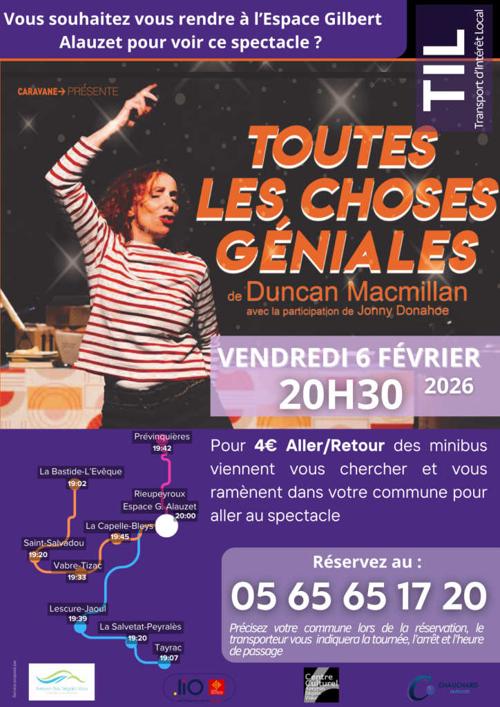 Le Transport d’Intérêt Local (TIL) qui fait la navette entres les communes de l’intercommunalité et l’Espace Culturel Gilbert Alauzet assurera le transport des passagers pour 1 évènement en février :