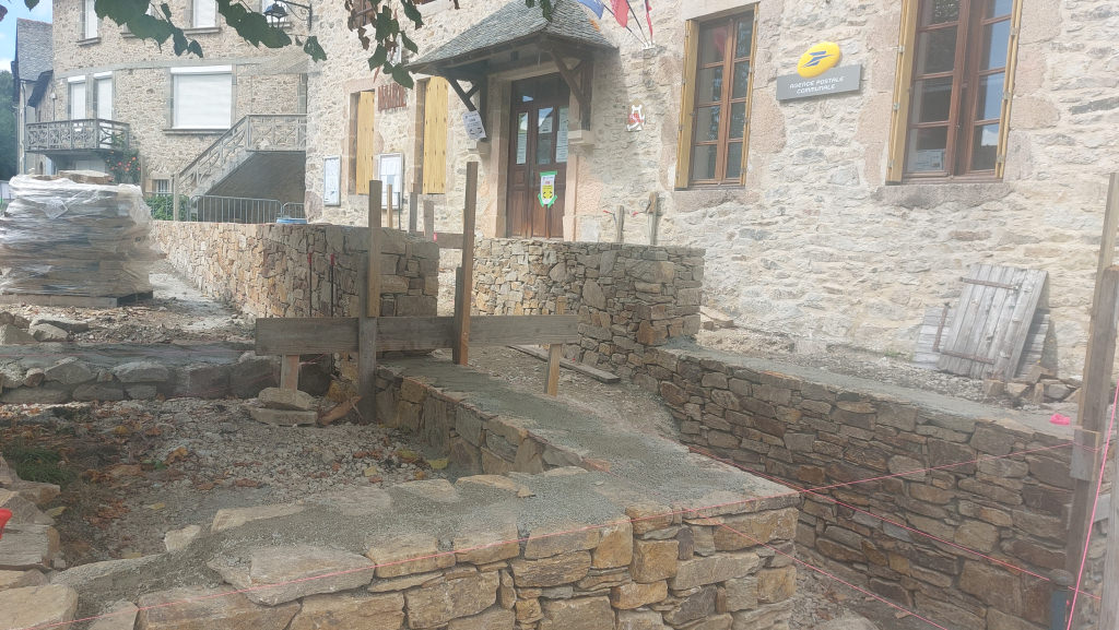 Pour commencer, le devant de la mairie est réaménagé. L’accès à la mairie se fait par la salle de réunion sous la mairie aux horaires habituels. La boîte aux lettres de La Poste est sur le côté gauche de la mairie. La boîte aux lettres de la mairie est sous l’escalier à côté de l’entrée de la salle de réunion.